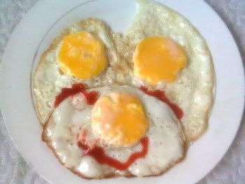 This one is the "halloween" version of my sunny-side-up egg. Looks scary right? Reminds me of Mr. Nevercracker in the movie Monster House.